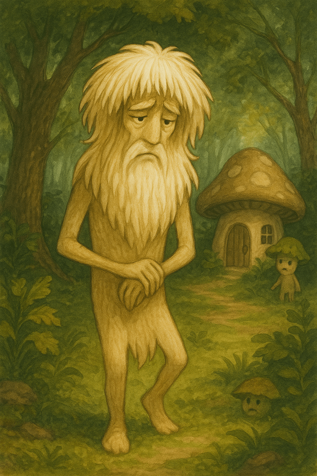 Image Description. A gentle, storybook-style illustration set in a quiet forest clearing. At the centre stands Hera, an anthropomorphic Lion’s Mane mushroom, tall and solemn with an air of ancient wisdom. His entire head and upper body are draped in flowing, cream-coloured tendrils that resemble soft, shaggy hair and beard — evoking the cascading texture… Continue reading The Mushroom Men Of Misilania – Character Bio – Hera
